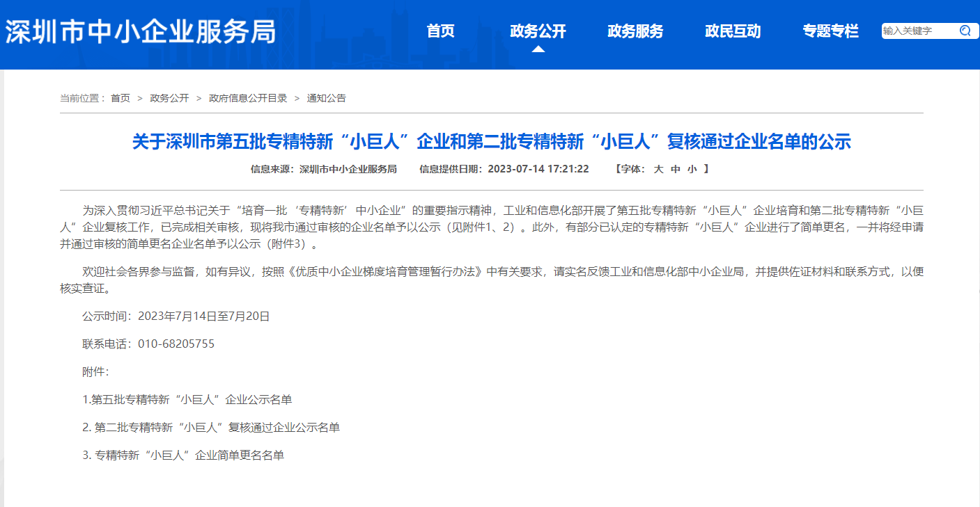 近日,深圳市中小企業服務局公示了工信部第五批專精特新“小巨人”企業和第二批專精特新“小巨人”複核通過企業名單,深圳市羞羞免费视频科技有限公司(以下簡稱:羞羞免费视频)成功入選。